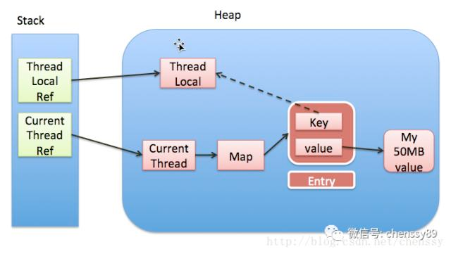 前面提到每个Thread都有一个ThreadLocal.ThreadLocalMap的map,该map的key为ThreadLocal实例,它为一个弱引用,我们知道弱引用有利于GC回收。当ThreadLocal的key == null时,GC就会回收这部分空间,但是value却不一定能够被回收,因为他还与Current Thread存在一个强引用关系。