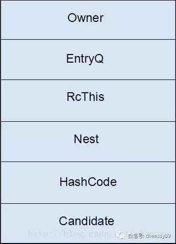 EntryQ:关联一个系统互斥锁(semaphore),阻塞所有试图锁住monitor record失败的线程。