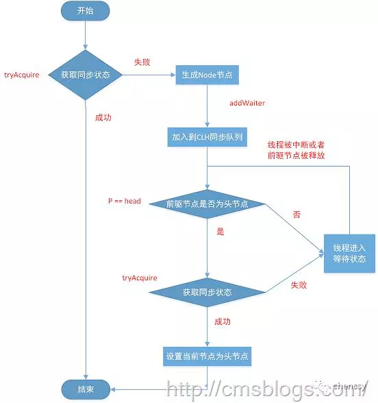 - 头节点释放同步状态后,将会唤醒其后继节点,后继节点被唤醒后需要检查自己是否为头节点。
