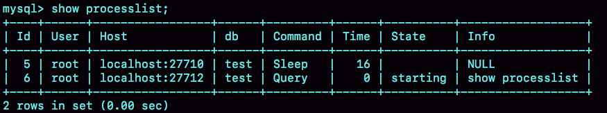 连接完成后,如果你没有后续的动作,这个连接就处于空闲状态,你可以在 show processlist 命令中看到它。文本中这个图是 show processlist 的结果,其中的 Command 列显示为“Sleep”的这一行,就表示现在系统里面有一个空闲连接。