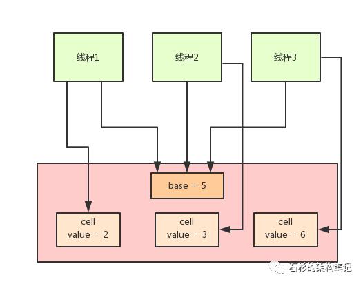 而且他内部实现了自动分段迁移的机制,也就是如果某个 Cell 的 value 执行 CAS 失败了,那么就会自动去找另外一个 Cell 分段内的 value 值进行 CAS 操作。
