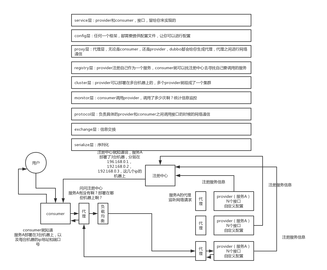 - 第三层:proxy 层,服务代理层,无论是 consumer 还是 provider,dubbo 都会给你生成代理,代理之间进行网络通信