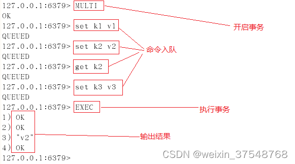 总结说:redis事务就是一次性、顺序性、排他性的执行一个队列中的一系列命令。