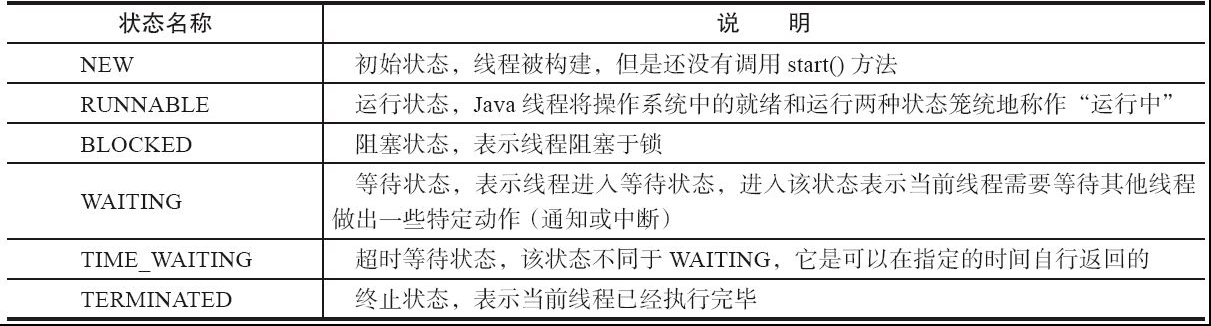 Java线程在运行的生命周期中可能处于6种不同的状态,在给定的一个时刻,线程只能处于其中的一个状态。