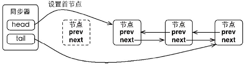 同步队列遵循FIFO,首节点是获取同步状态成功的节点,首节点的线程在释放同步状态时,将会唤醒后继节点,而后继节点将会在获取同步状态成功时将自己设置为首节点