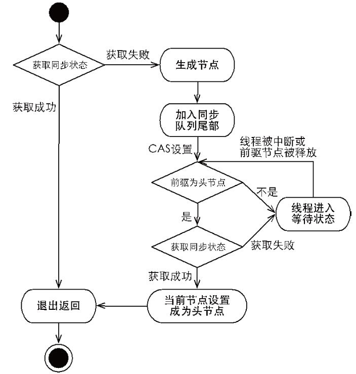 通过调用同步器的acquire(int arg)方法可以获取同步状态,该方法对中断不敏感,也就是由于线程获取同步状态失败后进入同步队列中,后续对线程进行中断操作时,线程不会从同步队列中移出