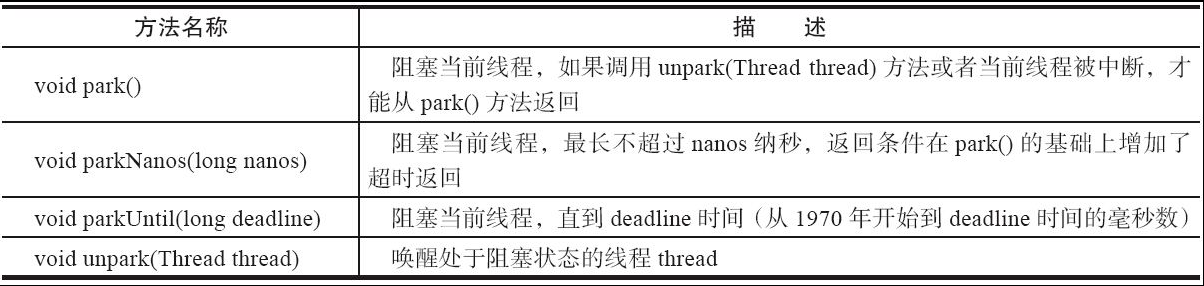 LockSupport定义了一组以park开头的方法用来阻塞当前线程,以及unpark(Thread thread)方法来唤醒一个被阻塞的线程。