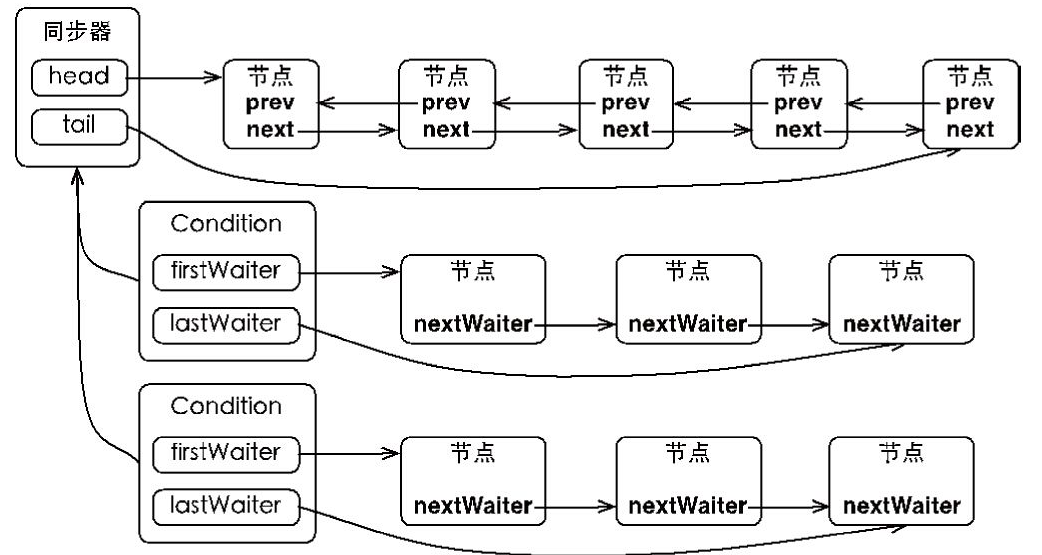 在Object的监视器模型上,一个对象拥有一个同步队列和等待队列,而并发包中的Lock(更确切地说是同步器)拥有一个同步队列和多个等待队列