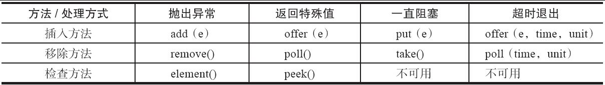 - 返回特殊值:当往队列插入元素时,会返回元素是否插入成功,成功返回true。如果是移除方法,则是从队列里取出一个元素,如果没有则返回null。
